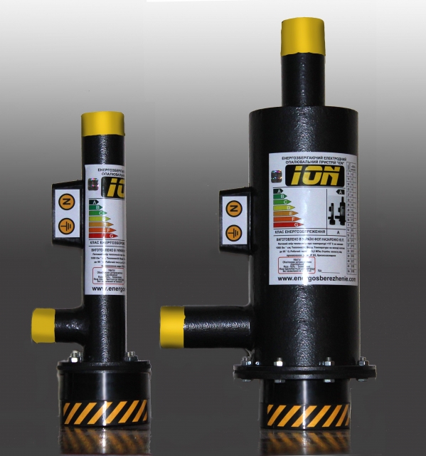 Внешне ионный котел имеет цилиндрическую форму, его диаметр обычно не превышает 140 мм, длина - 300-400 мм, а вес - 1,5 - 6 кг. Наименьшая мощность - 2 кВт (для отопления помещений около 120 м3), максимальная - 36 кВт (отопление помещений около 2250 м3). Однофазные котлы имеют мощность от 2 до 12 кВт, трехфазные - от 6 до 36 кВт.