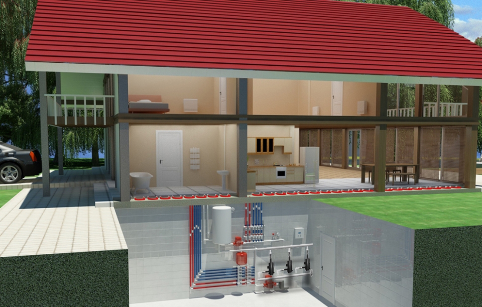 СХЕМА ОДНОТРУБНОЙ СИСТЕМЫ ВОДЯНОГО ОТОПЛЕНИЯ С НИЖНЕЙ РАЗВОДКОЙ